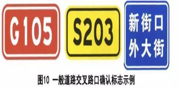 行車確認標志:包括地點距離標志,命名編號標志,路名標志;