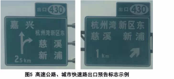 出口指引標志:包括下一出口預告標志,出口預告標志,出口標志及出口地點、方向標志,出口編號標志。
