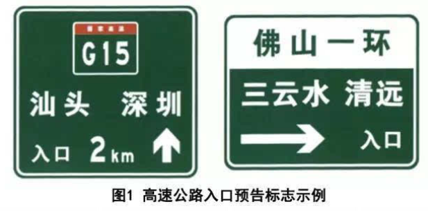 圖2中告知了駕駛人前方即將進入的高速公路的編號、經由該高速公路所能到達的目的地,提醒駕駛人正確判斷自己的目的地方向并選擇是否進入高速公路。