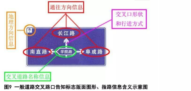 一般道路交叉路口告知標志版面圖形、指路信息含義如圖9所示。