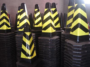 材質:現在的停車場減速帶多由高強度橡膠制成,原來也有水泥拱和鋼管路拱。橡膠減速壟減震性、抗壓性較好,壽命長,對車磨損少,噪音少,顏色為醒目的黃黑相間,色彩分明,無論在白天或夜晚都具有高度可視性。