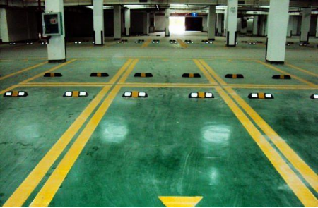 首先查清楚停車位的尺寸標準是多少,再通過整體空位的能用尺寸平均分各個位置,用深色粉筆打稿,然后用防水油漆上色。